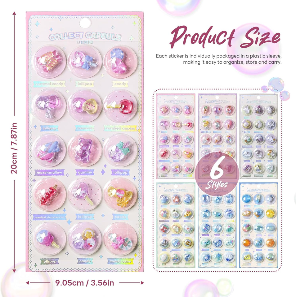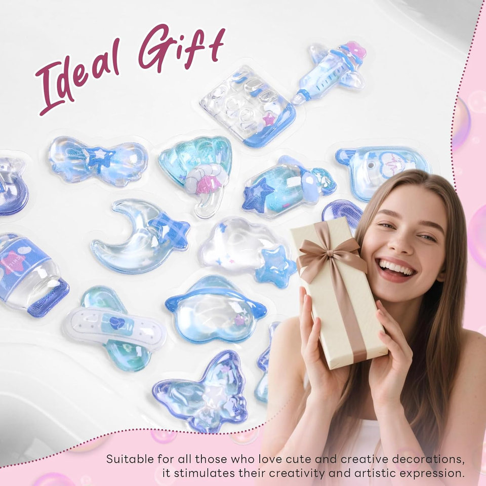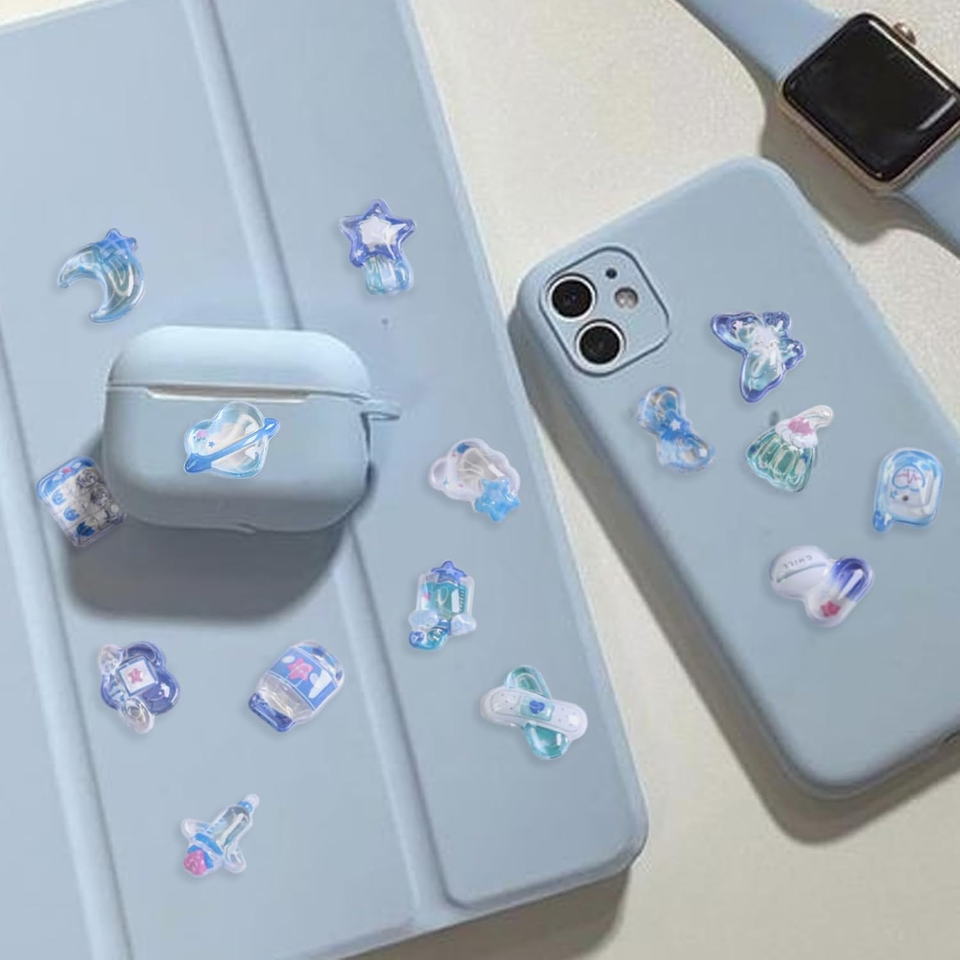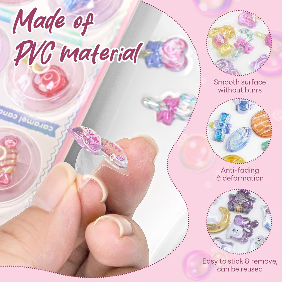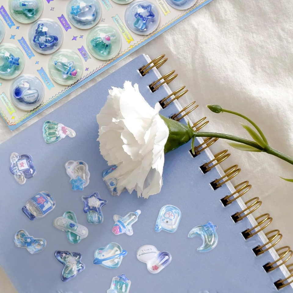 Ensemble d'autocollants gonflés personnalisés bleus mignons en PVC imperméable avec impression UV, motifs papillon, cœur d'amour, décorations bulles, dessins animés 3D
