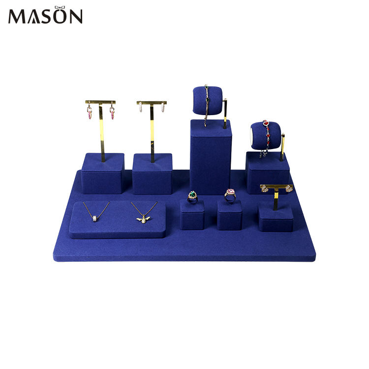 Présentoir de bague de bijoux en microfibre bleu personnalisé présentoir de bijoux en gros pour bague