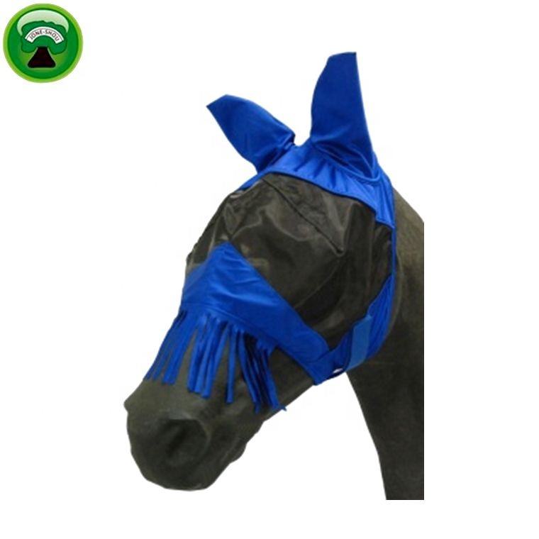 Masque anti-mouches personnalisé en PVC bleu pour chevaux avec protection des oreilles
