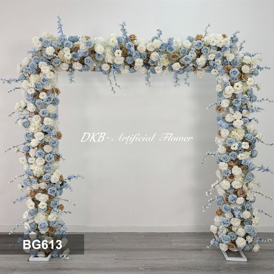 Custom Blue Realistic Artificial Flower Backdrop for Wedding Party Back to School Events-Arch Decorative
