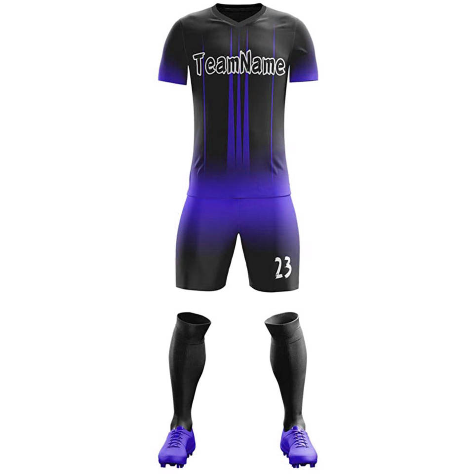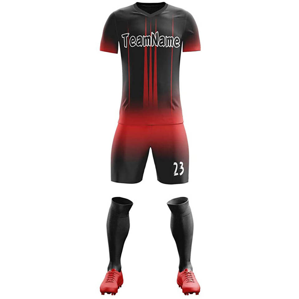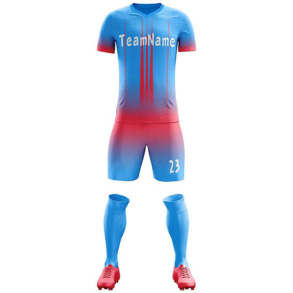 Maillot de football personnalisé pour homme en polyester bleu et rouge, avec broderie 3D du nom du club, ensemble uniforme de sport