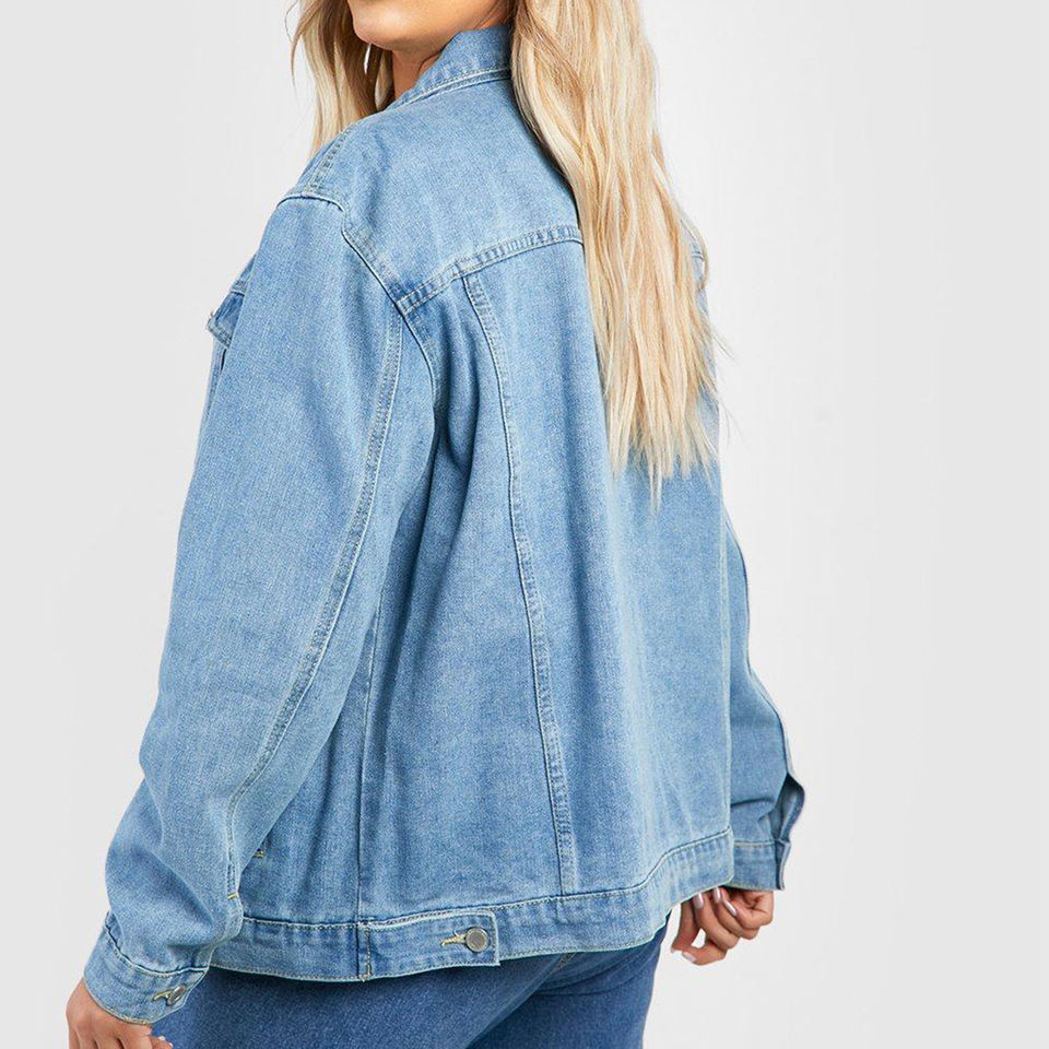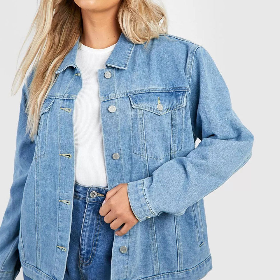 Veste en jean en coton bleu délavé personnalisée pour femmes Manches longues Vintage Boutonnée Manteau élégant Vêtement décontracté