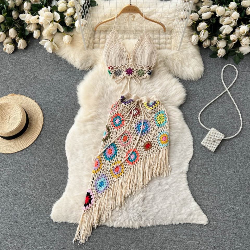 Bikini bohème personnalisé en crochet, col en V, maillot de bain tricoté à la main, vêtements de plage, ensemble deux pièces, bikini string pour femmes, maillot de bain
