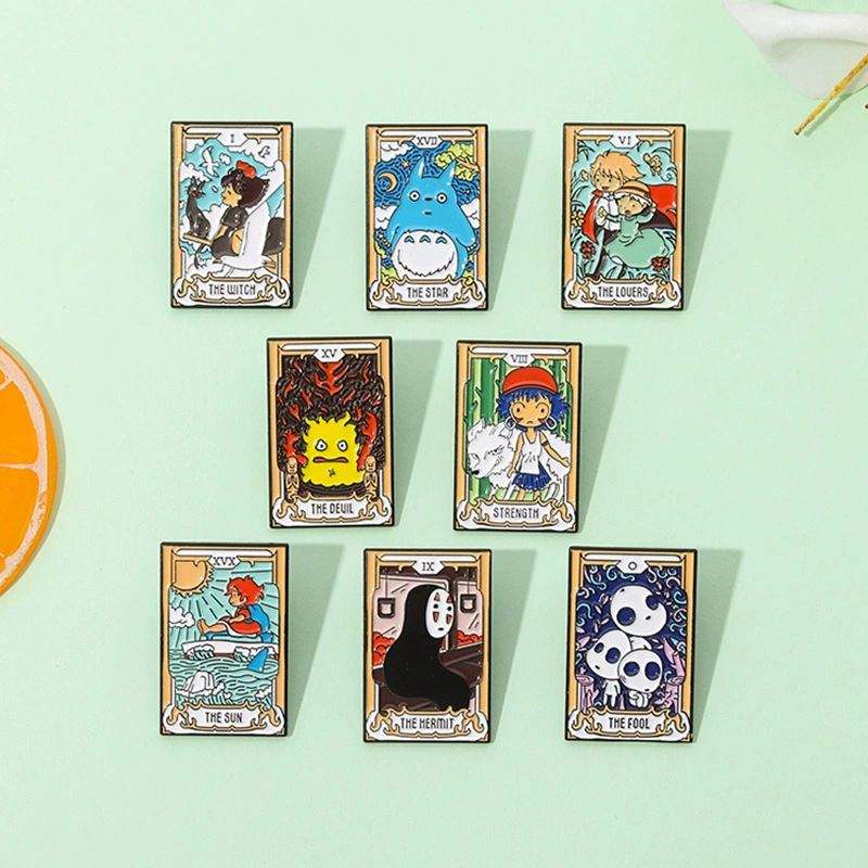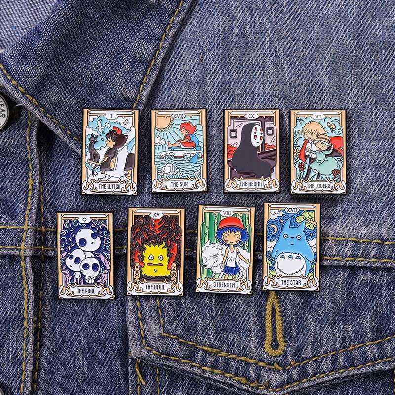 Badges de revers en métal émaillé personnalisés, motif Carte de Tarot Bohème, finition nickel noir, pour la mode occulte, conception sur mesure en gros