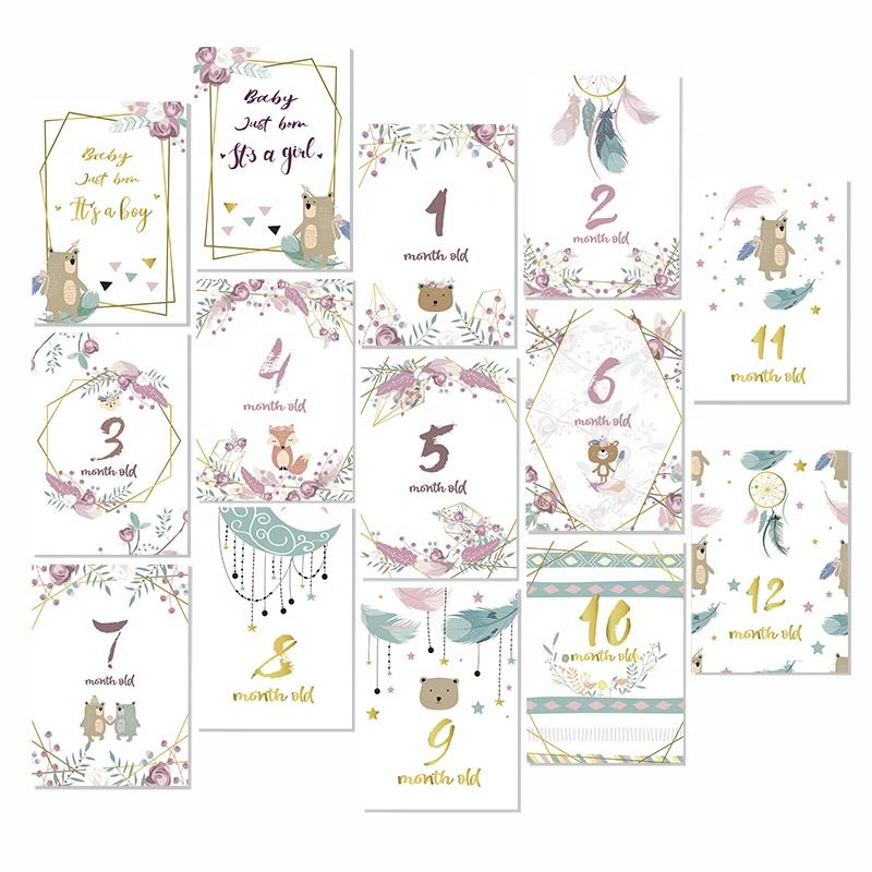 Carte mensuelle réversible Boho pour bébé, cartes de étapes, en papier, pour prise de photographie de nouveau-né, pour garçon et fille,