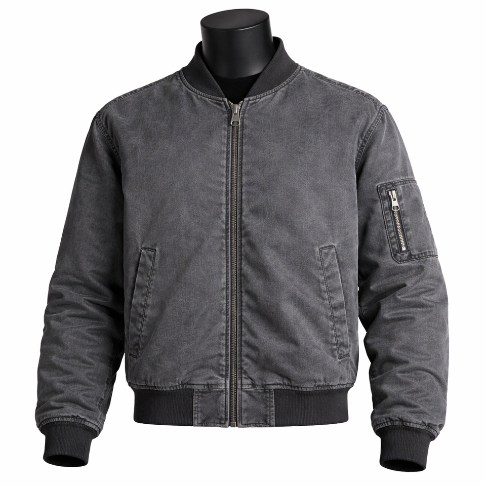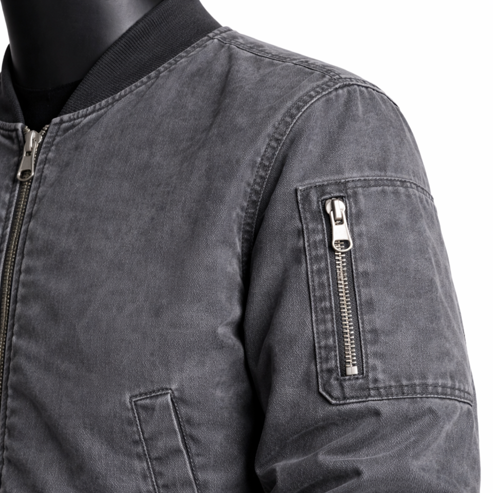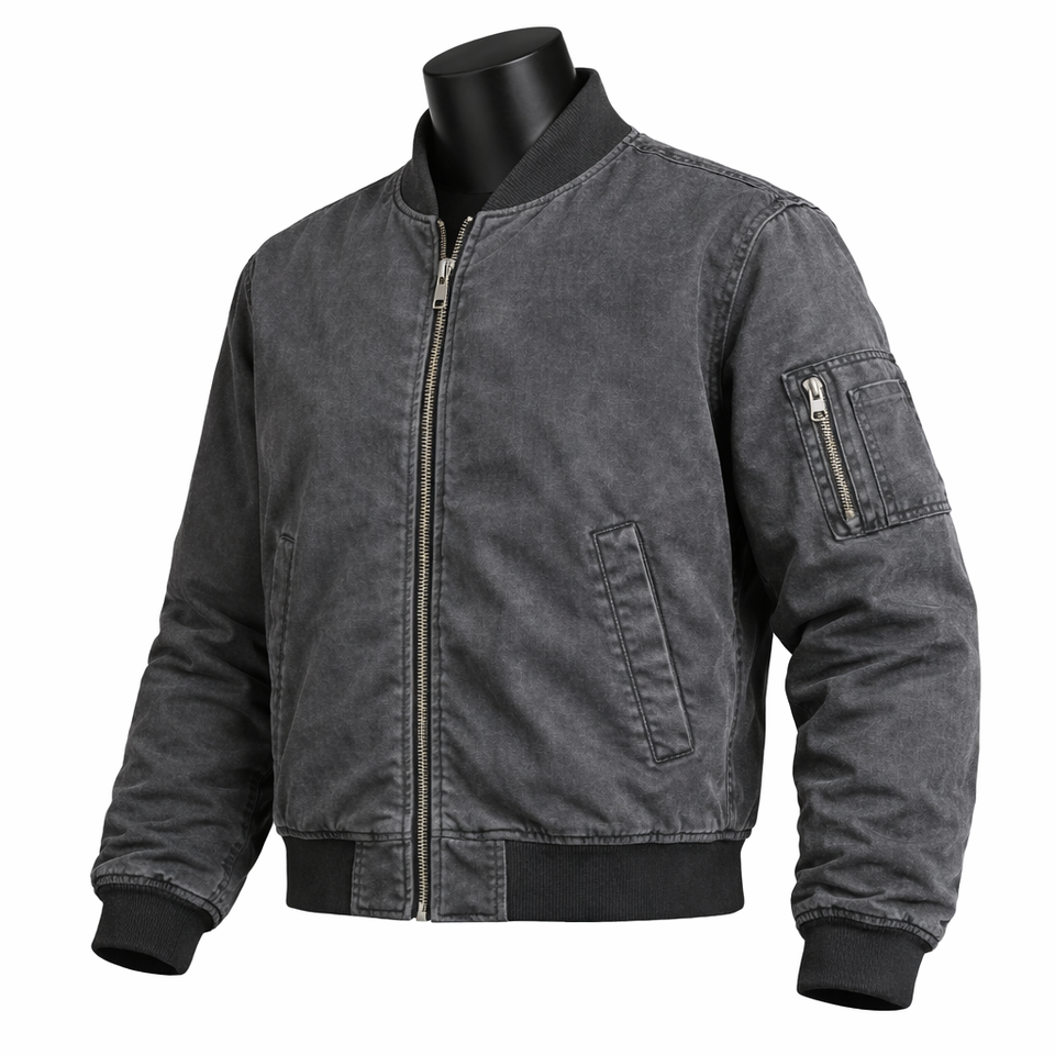 Blouson Bomber Personnalisé pour Homme – Blouson Vintage Délavé Léger Coupe-Vent Zippé Décontracté Style Urbain Streetwear