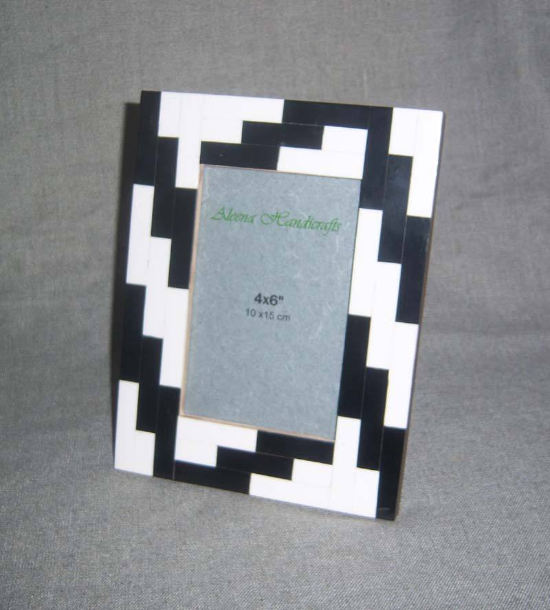 Cadre photo personnalisé écologique en incrustation d'os avec un design moderne, fabriqué à la main en Inde à partir de bois et de verre pour la décoration intérieure