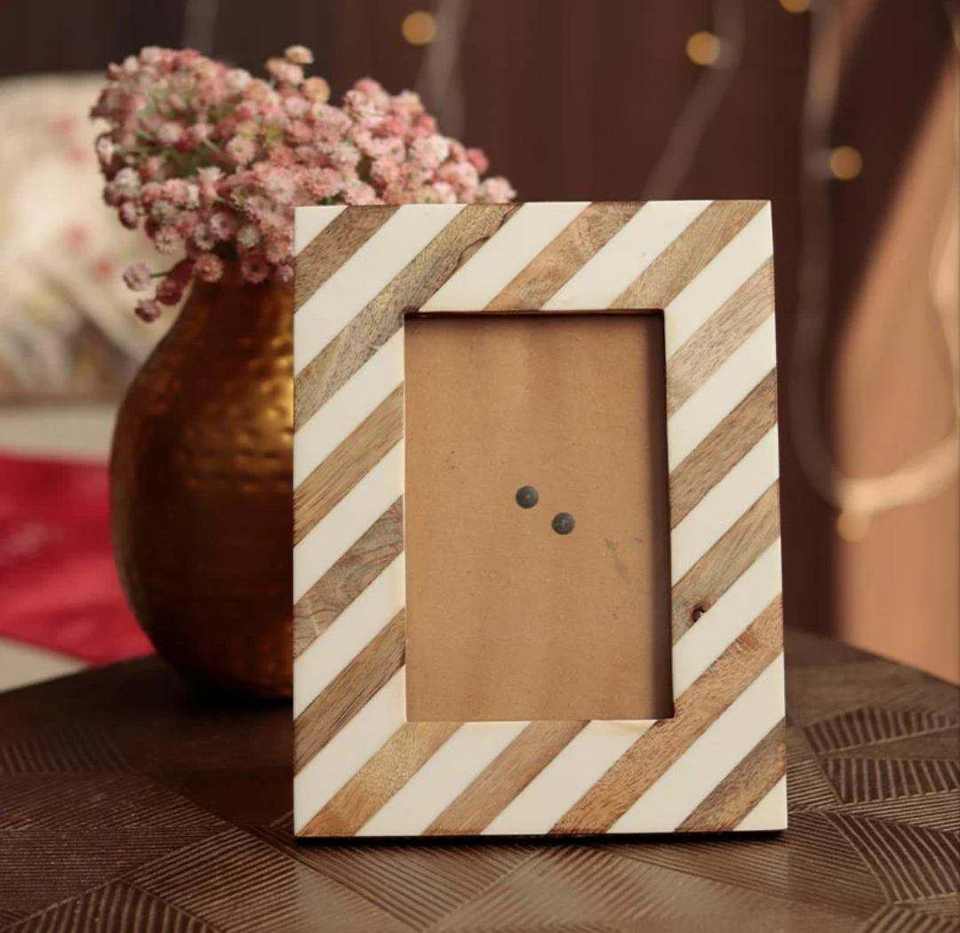 Cadre photo personnalisé en os incrusté avec logo sur mesure, cadre photo en bois fait main écologique pour la décoration intérieure et les cadeaux