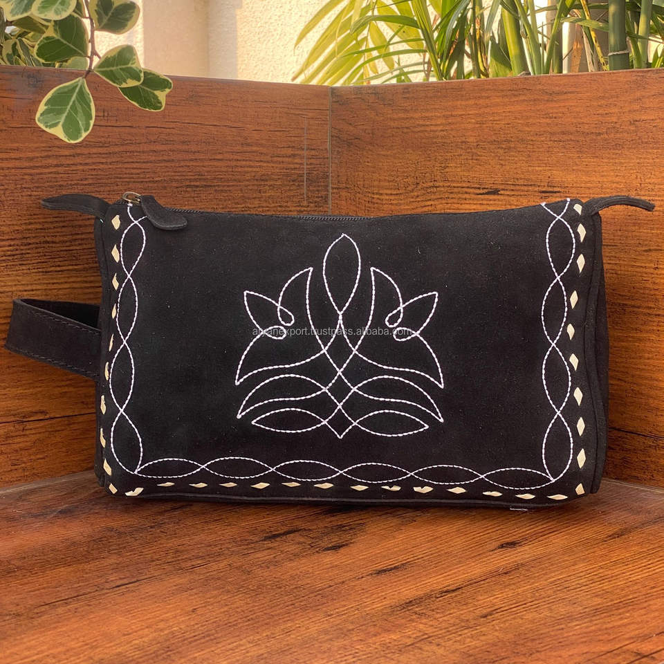 Sacs de toilette de voyage en cuir suédé à mailles ouvertes et petit coffret à bijoux portable en cuir suédé à mailles ouvertes pour femmes