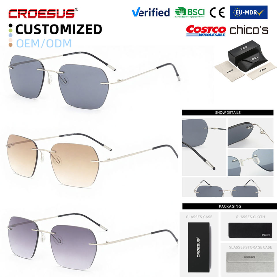 Lunettes de soleil de luxe personnalisées sans monture en métal pur, à changement de couleur, anti-lumière bleue, pour hommes et femmes myopes, avec correction de la vue