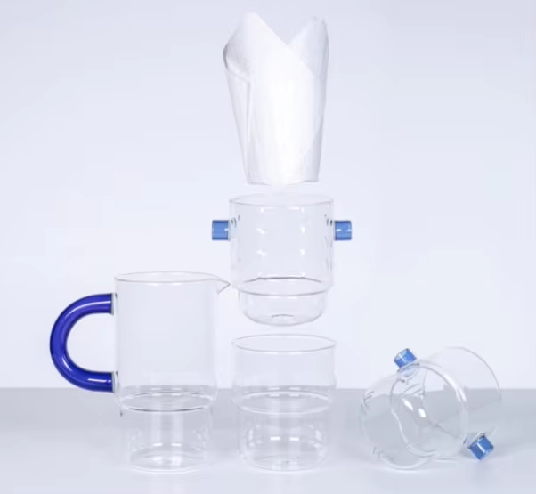 Ensemble de tasses filtrantes en verre borosilicate personnalisé, cafetière à filtre, théière en verre avec poignée bleue