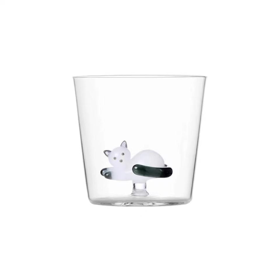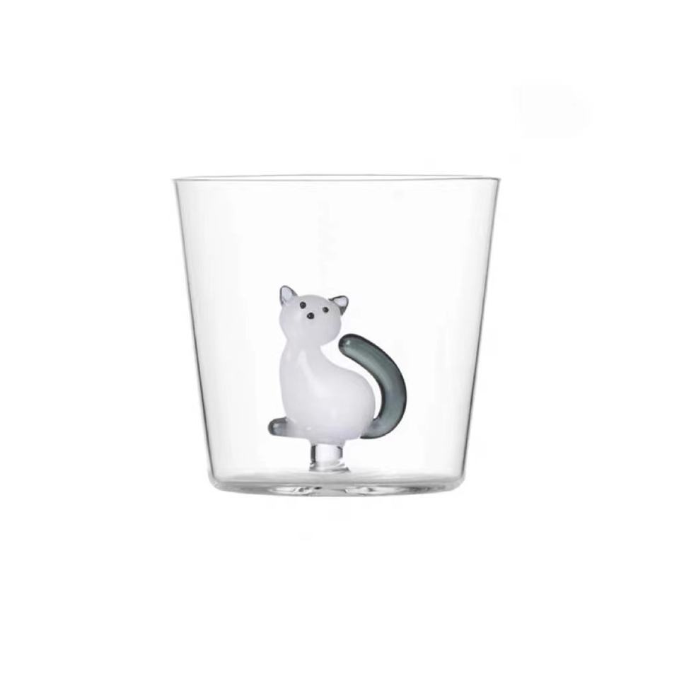 Gobelet en verre borosilicate personnalisé résistant à la chaleur avec verre 3D fait à la main chat animaux Figurine