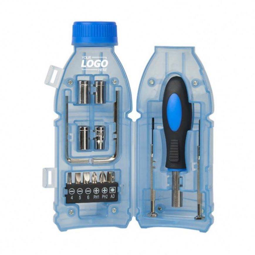 Ensemble de tournevis en forme de bouteille personnalisé : 1 ensemble d'outils de réparation ménagers, compacts et portables - Cadeau promotionnel idéal