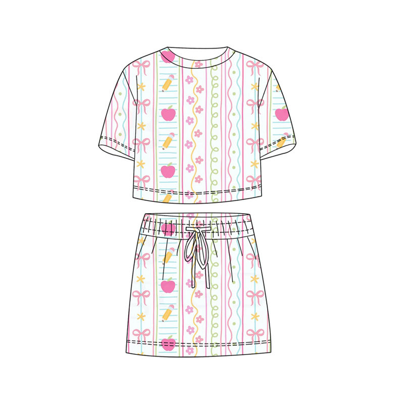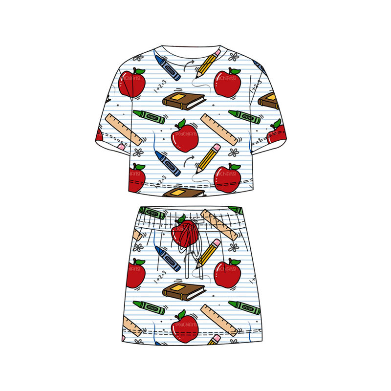 Ensemble décontracté respirant en coton et élasthanne pour bébés filles, avec short et chemise, motif pomme, collection rentrée scolaire, style boutique personnalisé
