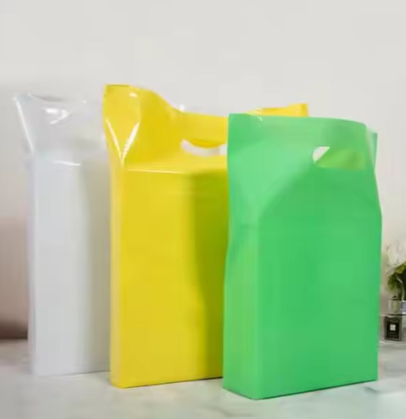 Sacs cadeaux en plastique PE découpés sur mesure avec poignée, impression en héliogravure, réutilisables et au design unique pour le shopping