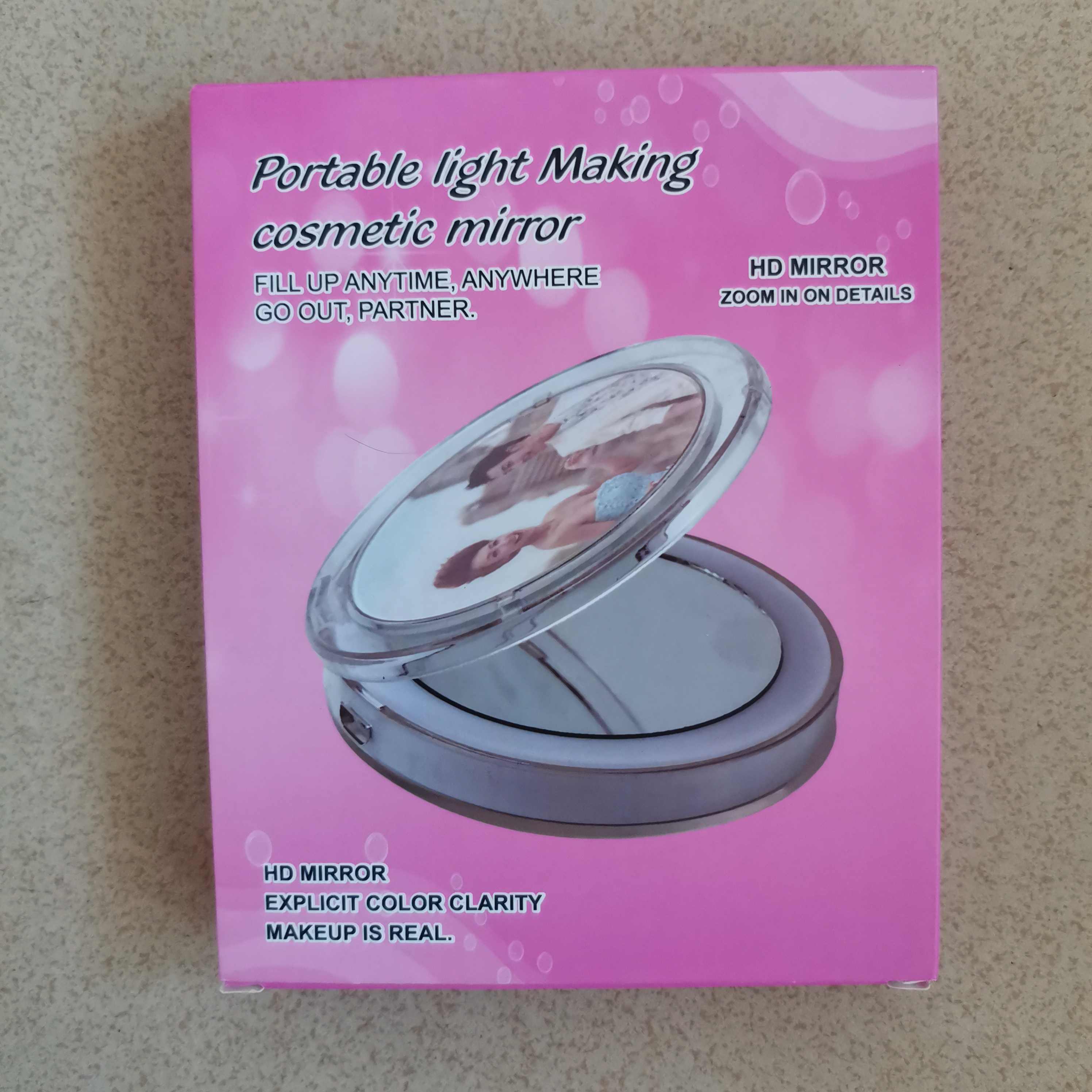 Boîte de lumières LED portables, logo personnalisé, petit miroir rond pliant pour maquillage de nuit de fille