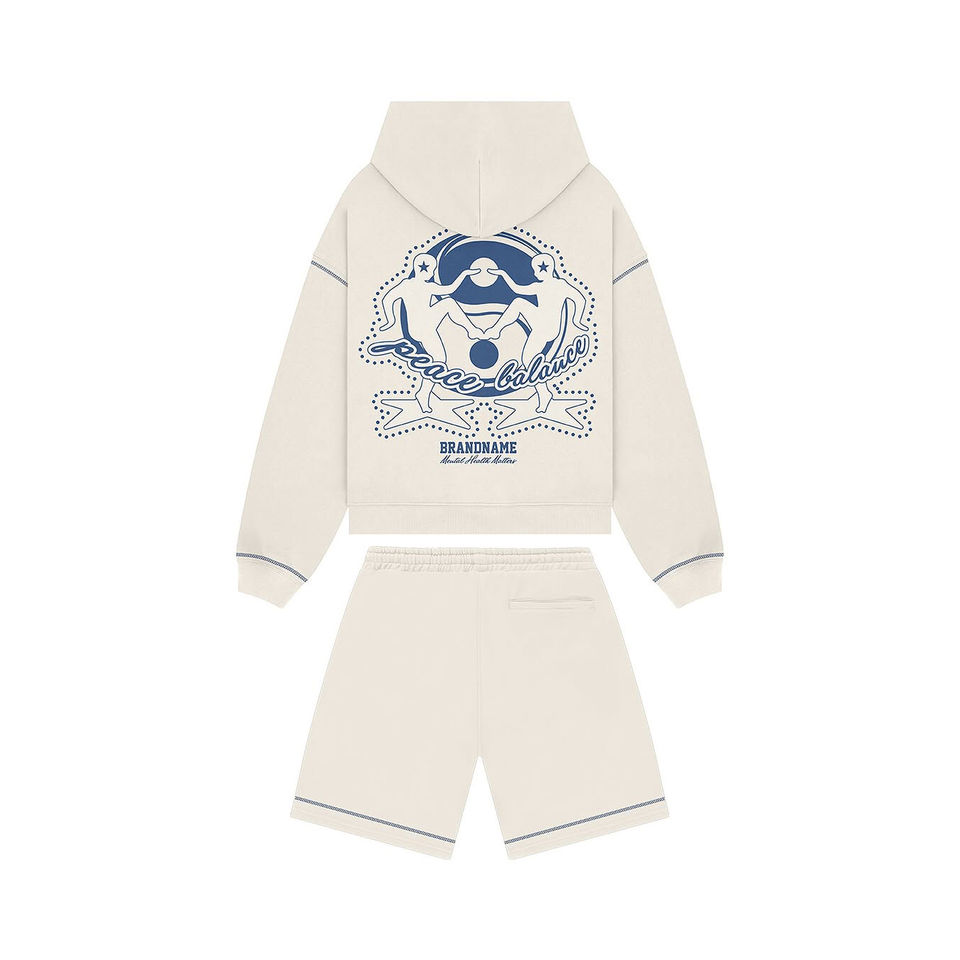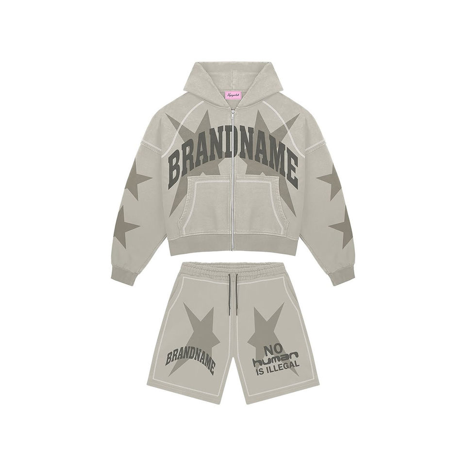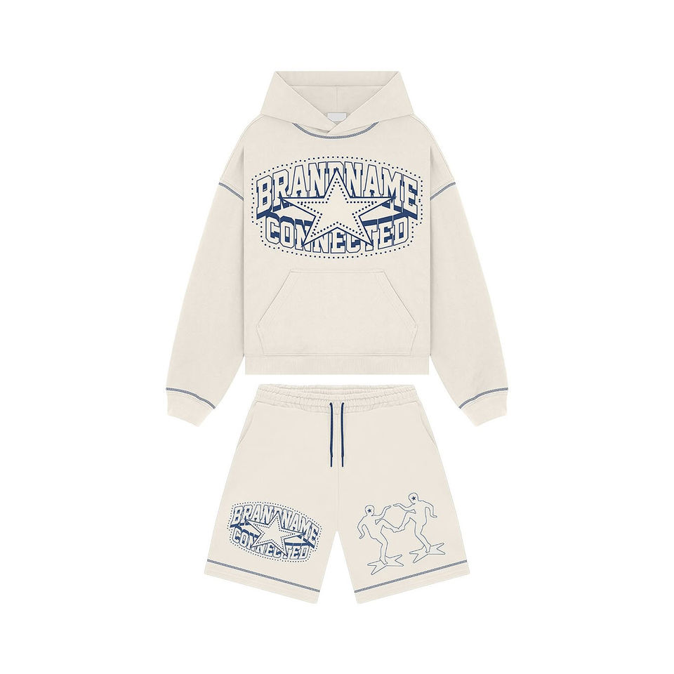 Ensemble sweat-shirt et short pour homme, en coton 100%, imprimé à l'écran, délavé à l'acide, style boxy personnalisé