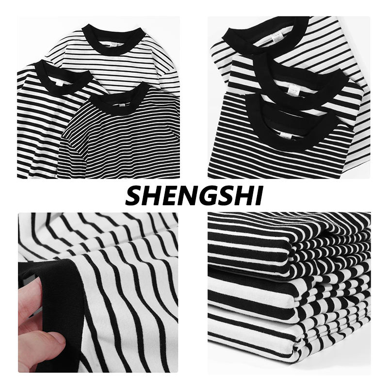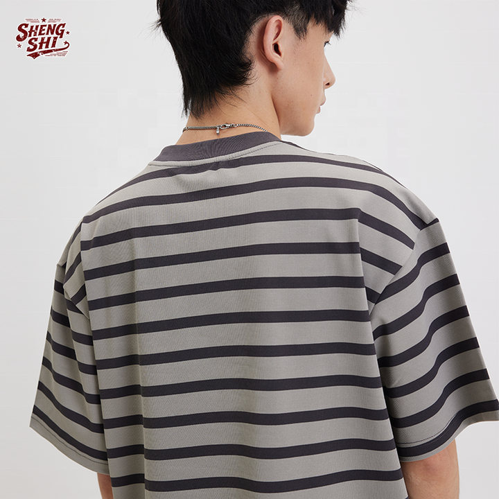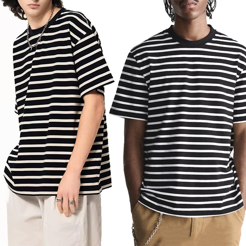 Ensembles rayés personnalisés Boxy Daily's, ODM régulier, coton lourd 250g, rayures larges, col rond, doux, haute qualité pour le sport