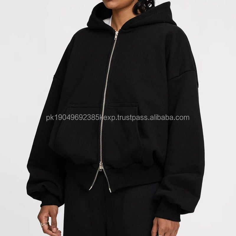 Custom Boxy Fit Double Zip 470gsm French Terry Cotton Hoodie Clothing Manufactures Unisex Plain Hoodie