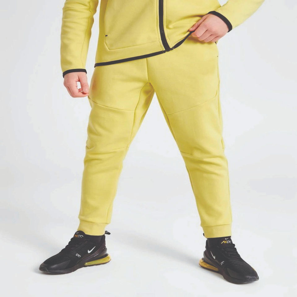 Survêtement technique pour garçons avec logo de marque personnalisé, 69% coton, 31% polyester, jaune, sweat à capuche zippé intégral, pantalon de jogging, pantalon de survêtement