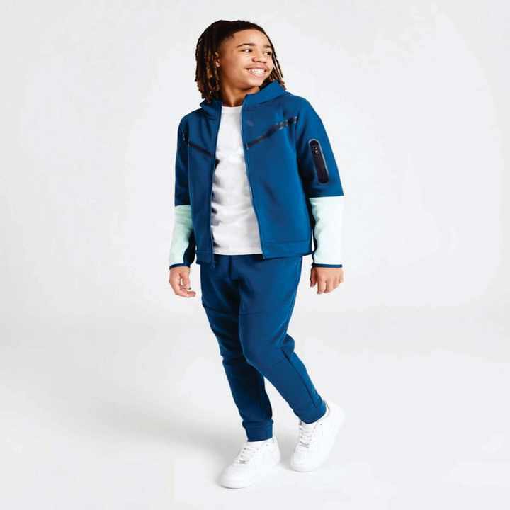 Logo de marque personnalisé 69% coton 31% polyester bleu royal garçons Tech survêtement polaire fermeture éclair complète à capuche joggers pantalons de survêtement survêtement