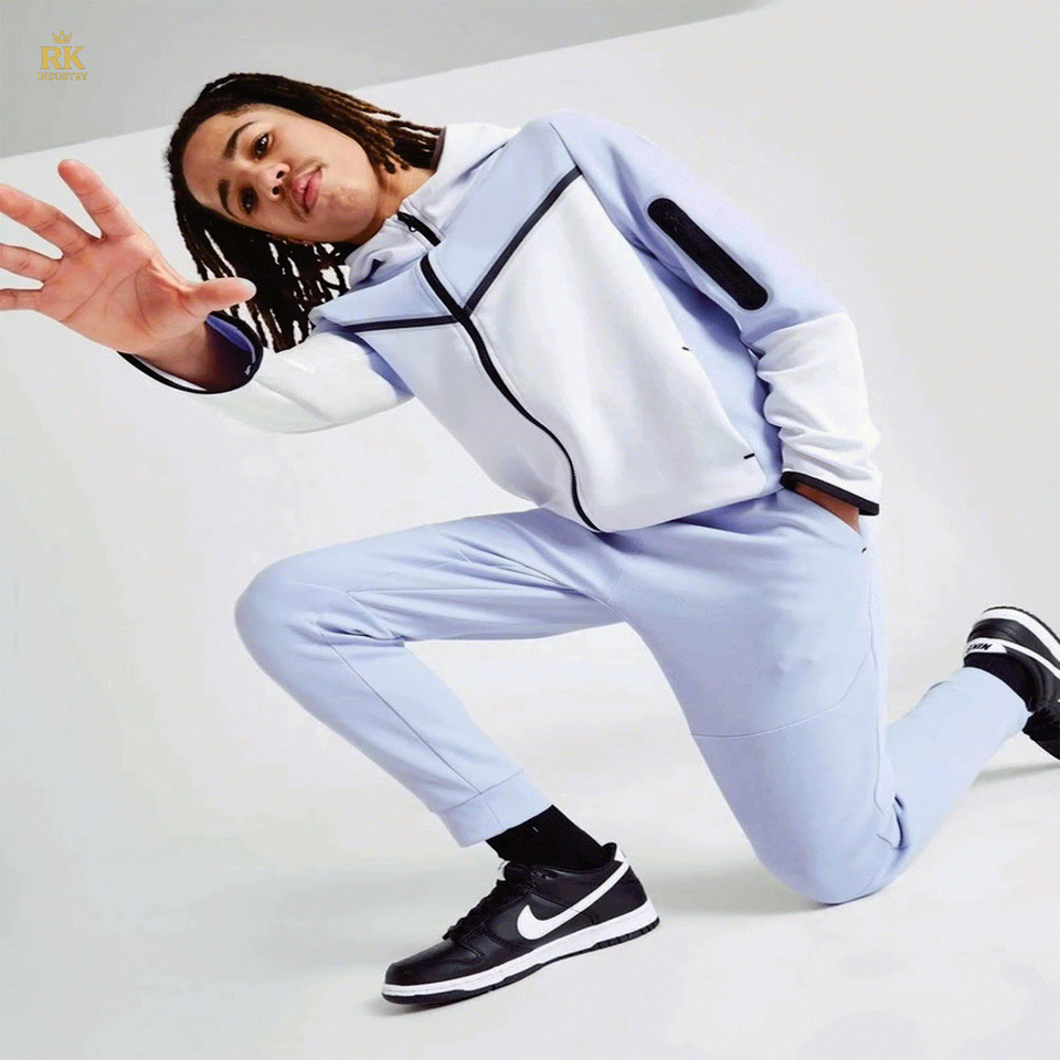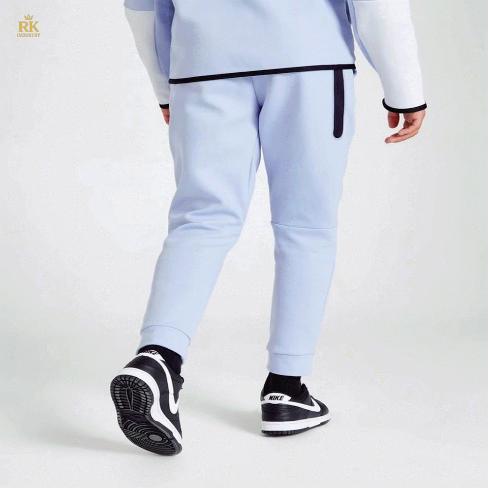 Logo de marque personnalisé 69% coton 31% polyester bleu ciel garçons Tech polaire survêtement fermeture éclair complète à capuche Joggers pantalons de survêtement survêtement