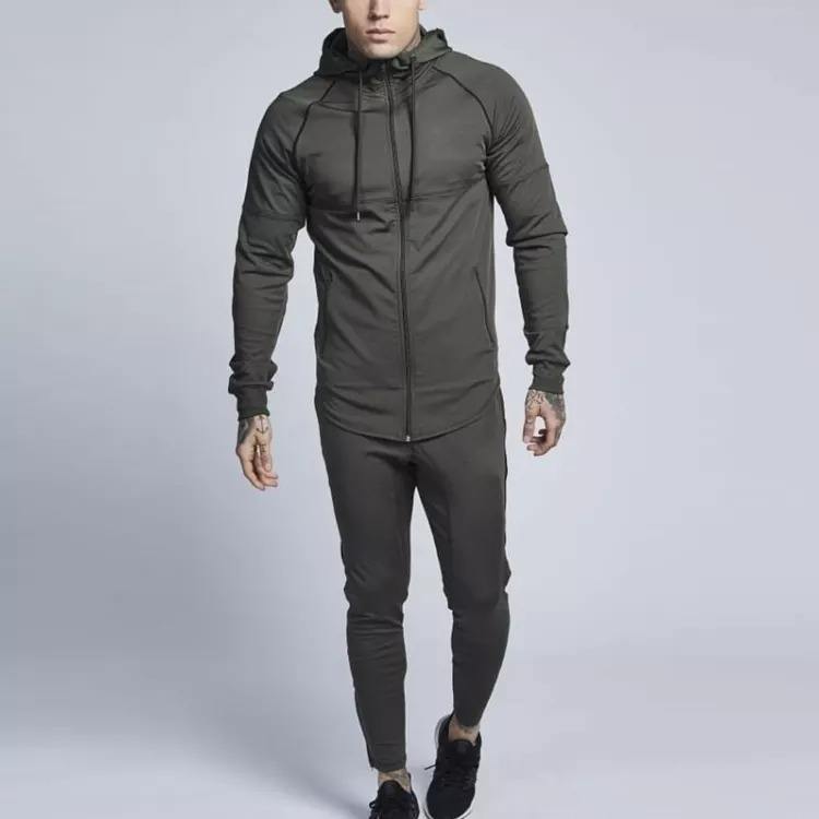 Conception de logo de marque personnalisée 66% coton 34% polyester gris chiné foncé coupe chaude standard vêtements de sport survêtement en polaire technique