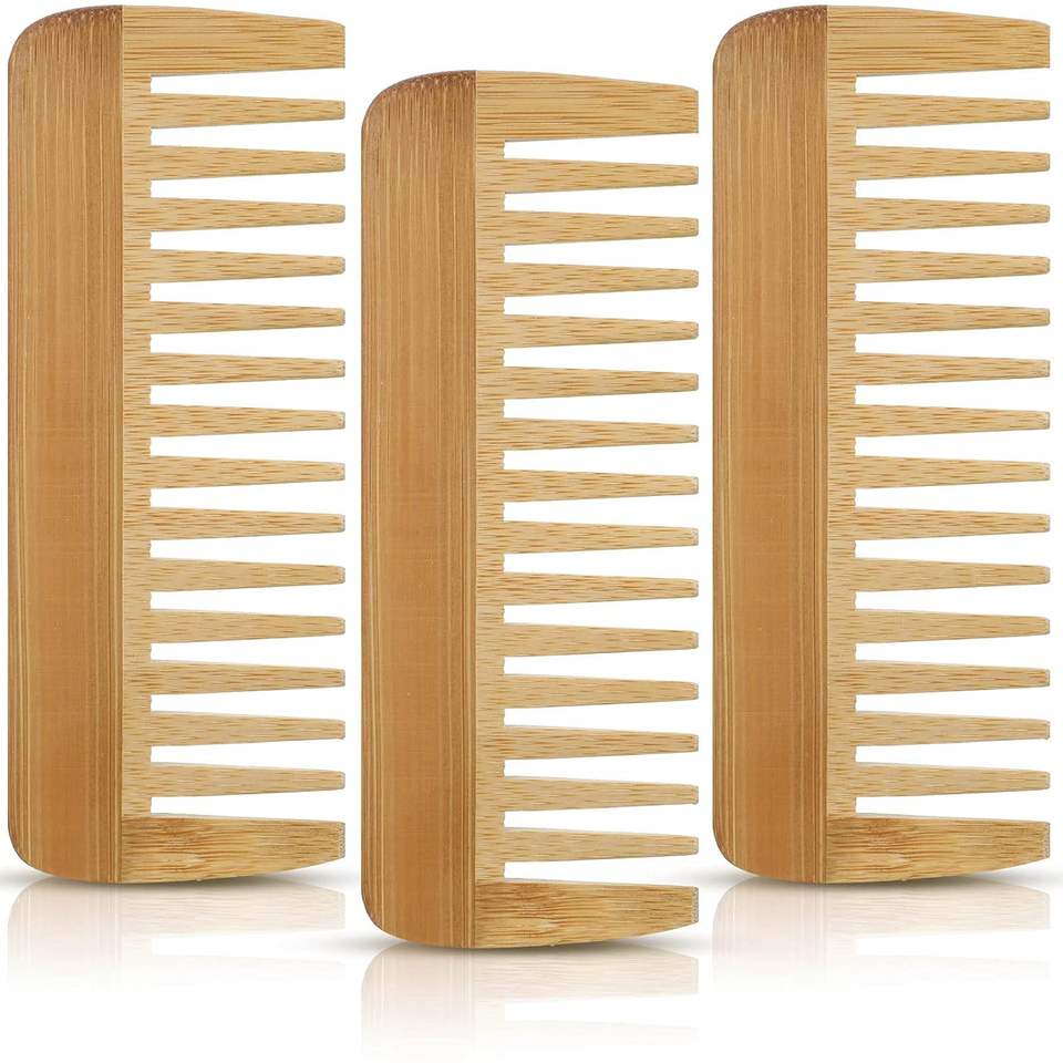 Ensemble de peignes à cheveux en bois de bambou à dents larges, écologiques, avec logo de marque personnalisé, pour usage domestique, peigne courant