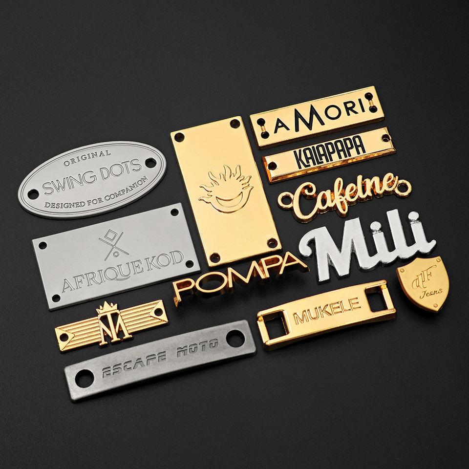 Étiquette de plaque métallique avec logo de marque personnalisé Sac d'accessoires du vêtement en rouleau de forme carrée pour Hijab Écharpe Chaussures Vêtements gravés en or