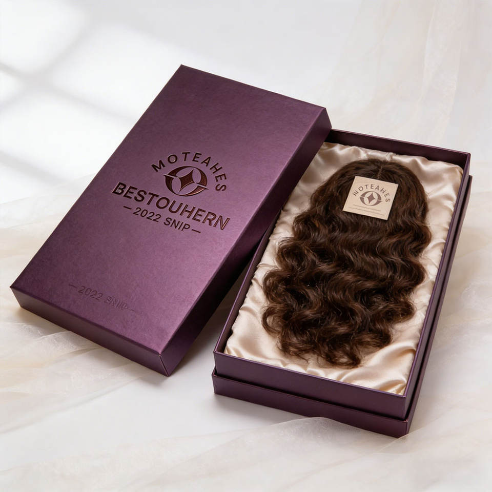 Boîtes cadeaux rigides de luxe personnalisées avec couvercle amovible en papier, pour emballage de perruques cosmétiques, boîte supérieure et inférieure avec doublure en satin