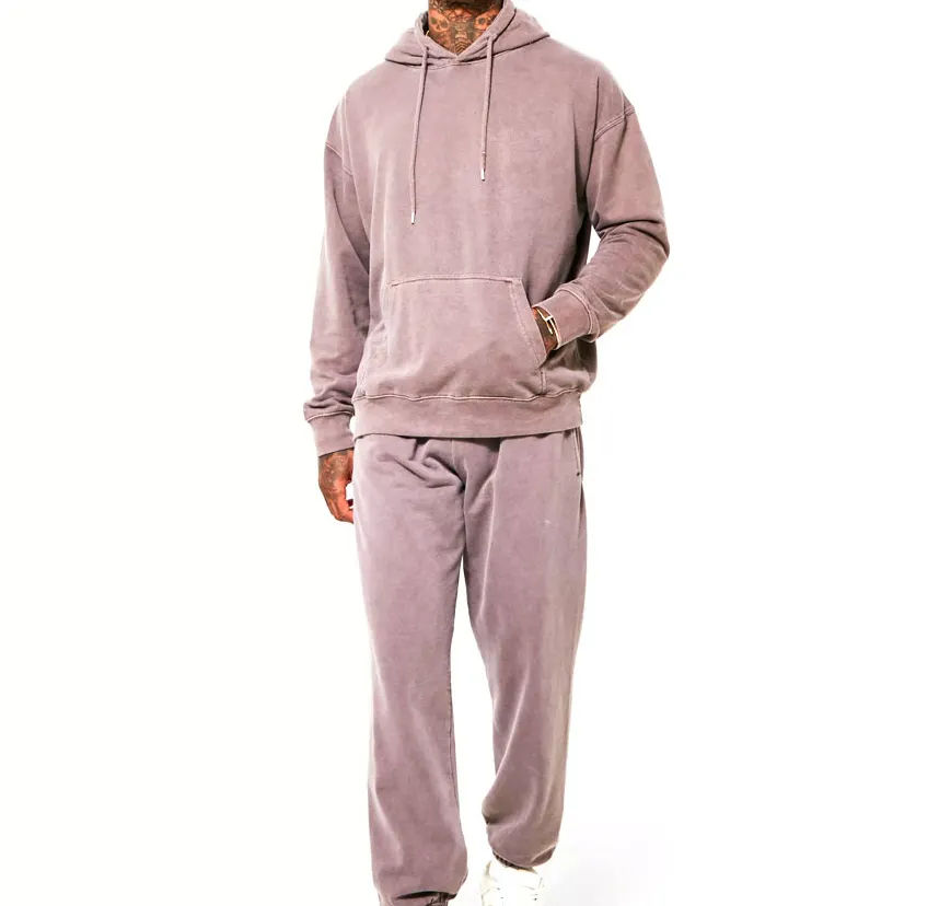 Survêtement décontracté d'hiver pour homme, personnalisable, en molleton 100 % coton respirant, effet délavé