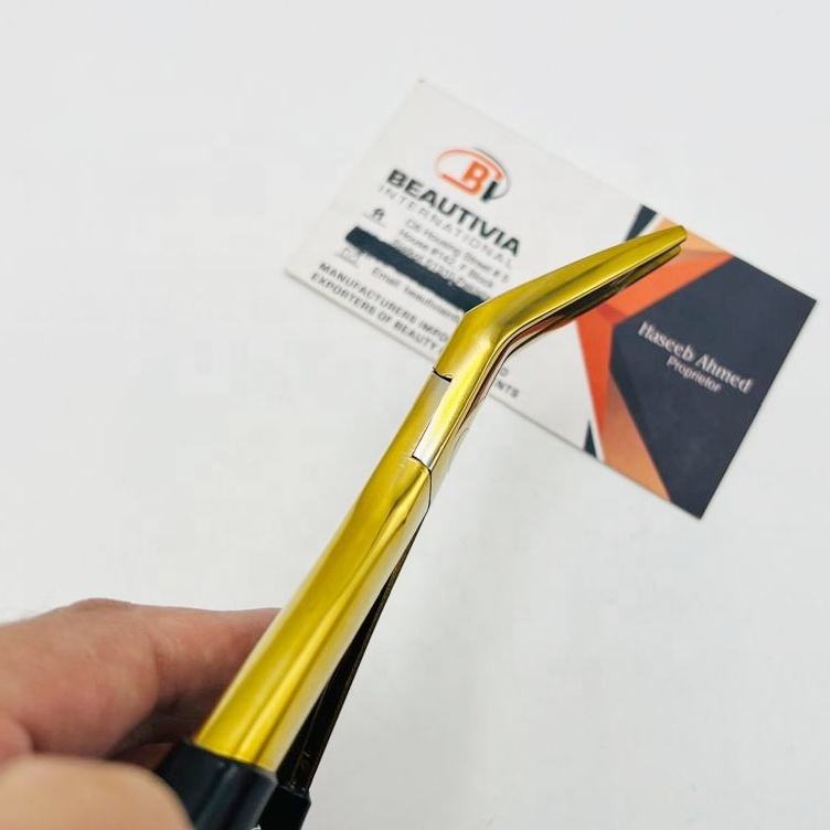 Pince à cheveux en acier inoxydable incurvée en plasma doré de marque personnalisée pour les extensions de cheveux, outils de coiffage pour micro-perles et nano-perles