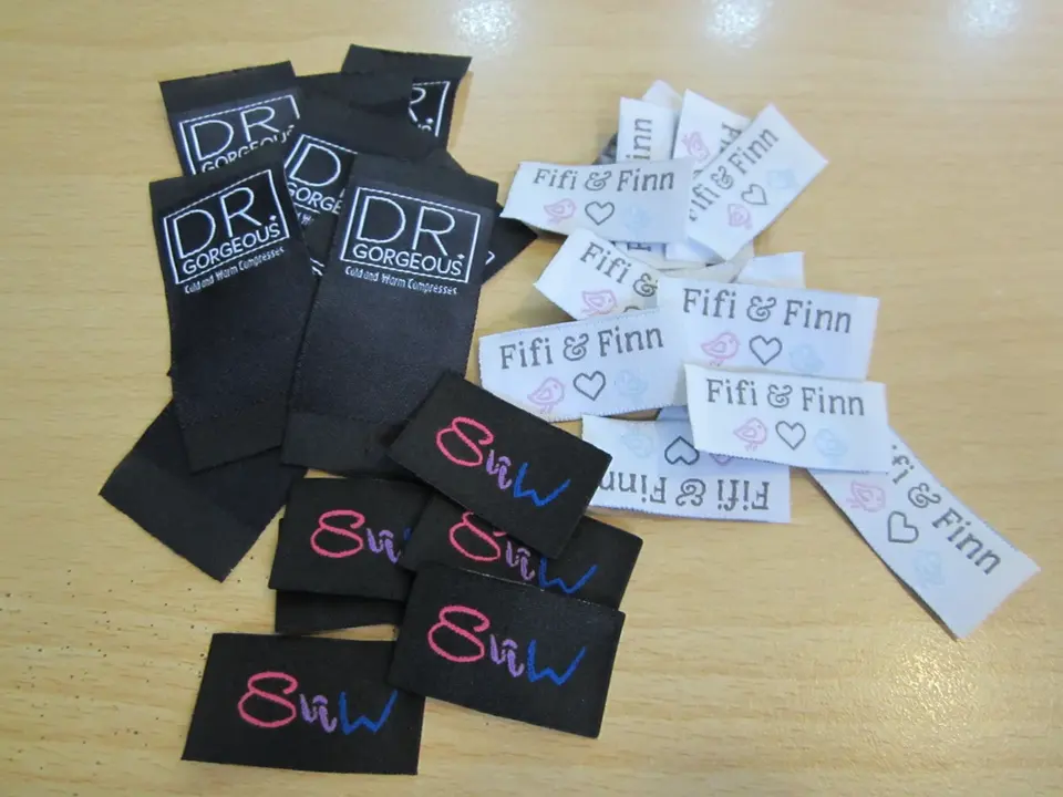 Étiquettes de vêtements tissées à pli d'extrémité en polyester avec logo de marque personnalisé et tissu damassé pour les applications vestimentaires