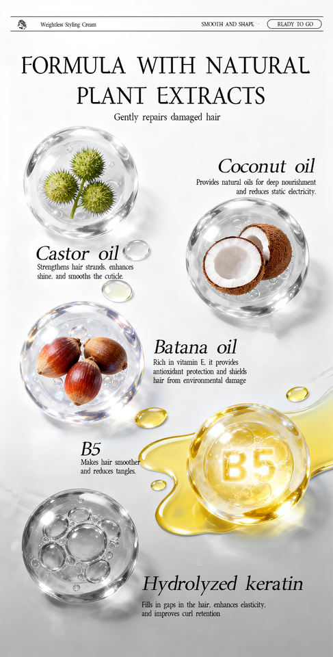 Crème Coiffante Personnalisée Sans Sulfate Résistante à l'Humidité pour Boucles Naturelles Soyeuses, Volumineuses et Définies