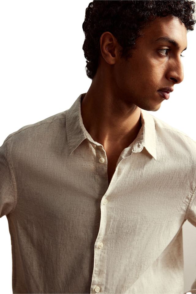 Chemises à col manches longues texturées de marque haut tendance Regular Fit pour hommes de qualité supérieure Comfort Wear lin coton mélangé