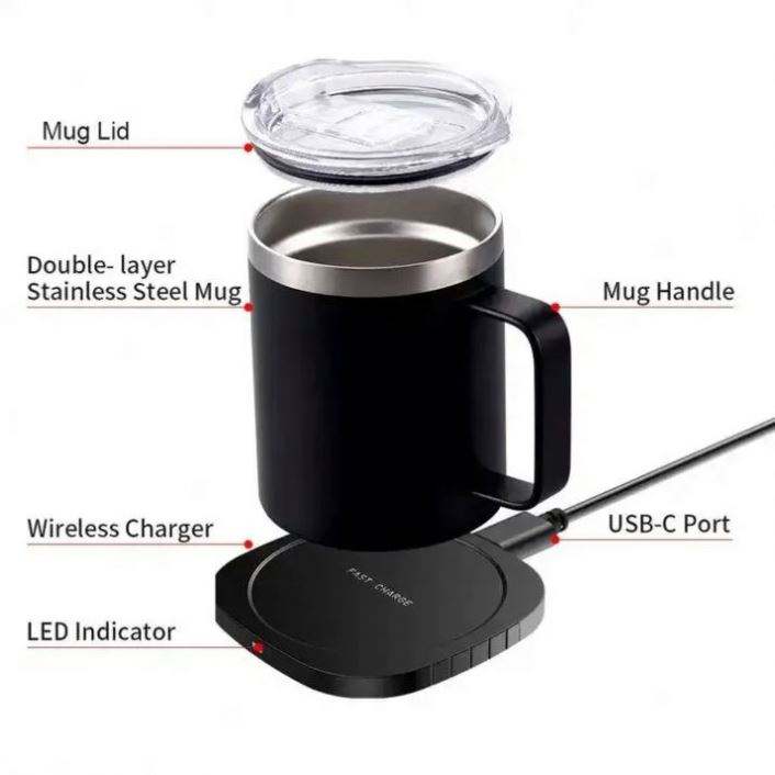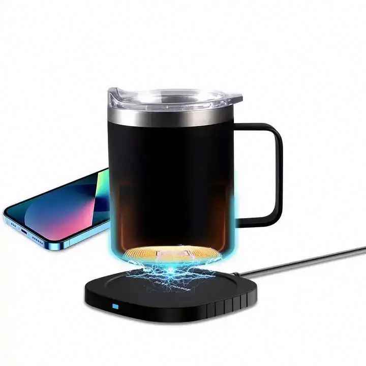 Mug intelligent en acier inoxydable personnalisé avec chargeur de téléphone sans fil, chauffe-tasse USB pour thé au lait, café