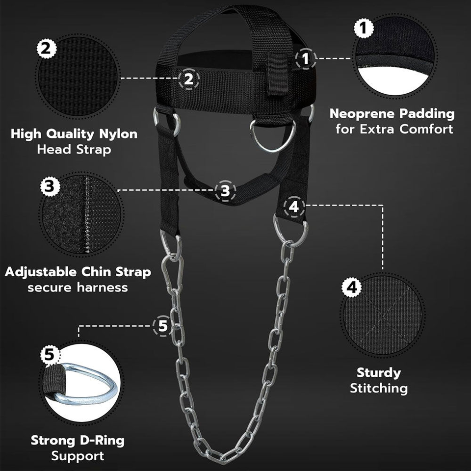 Sangle de Tête Personnalisable avec Système de Boucle à Ajustement Rapide et Sangle de Cou Rembourrée pour la Musculation – Fournitures de Fitness en Gros