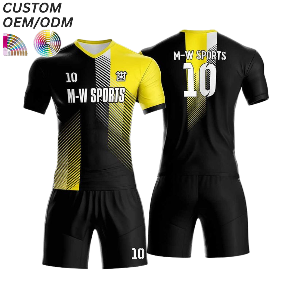Ensemble d'uniformes d'entraînement de football personnalisés respirants 100 % polyester, tenue de sport courte, support OEM ODM, vente en gros, usine de vêtements de football