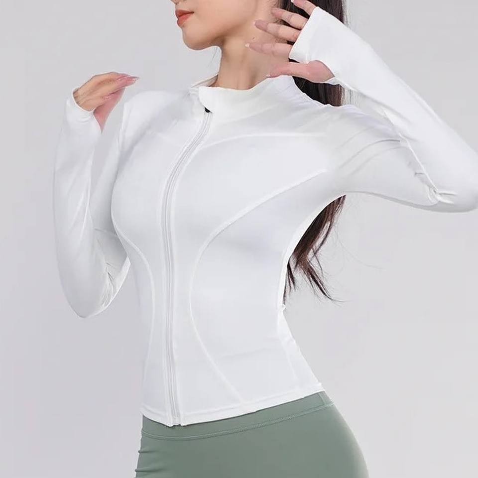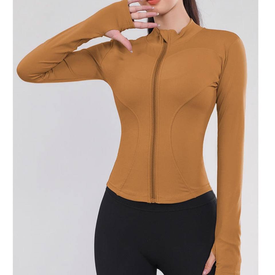 Veste de sport respirante personnalisée avec logo, fermeture éclair intégrale, coupe ajustée, veste de fitness, veste de yoga pour femmes, manches longues
