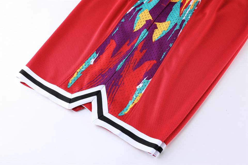 Short de basket-ball personnalisé en maille imprimée respirante Streetwear rouge pour adultes en cours d'exécution avec poche