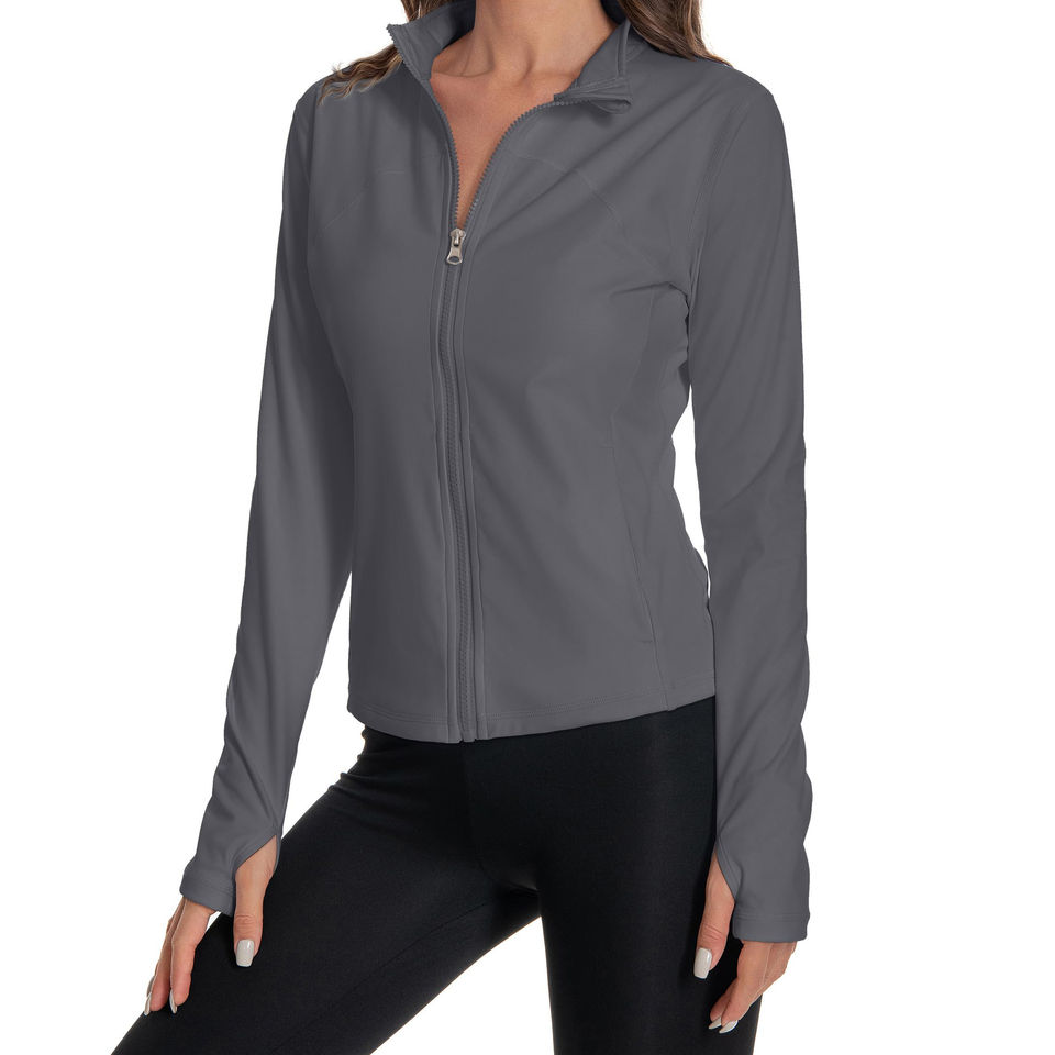 Veste de sport de yoga pour femmes respirante et à séchage rapide, à manches longues, avec logo sur le devant, fermeture éclair, prix avantageux