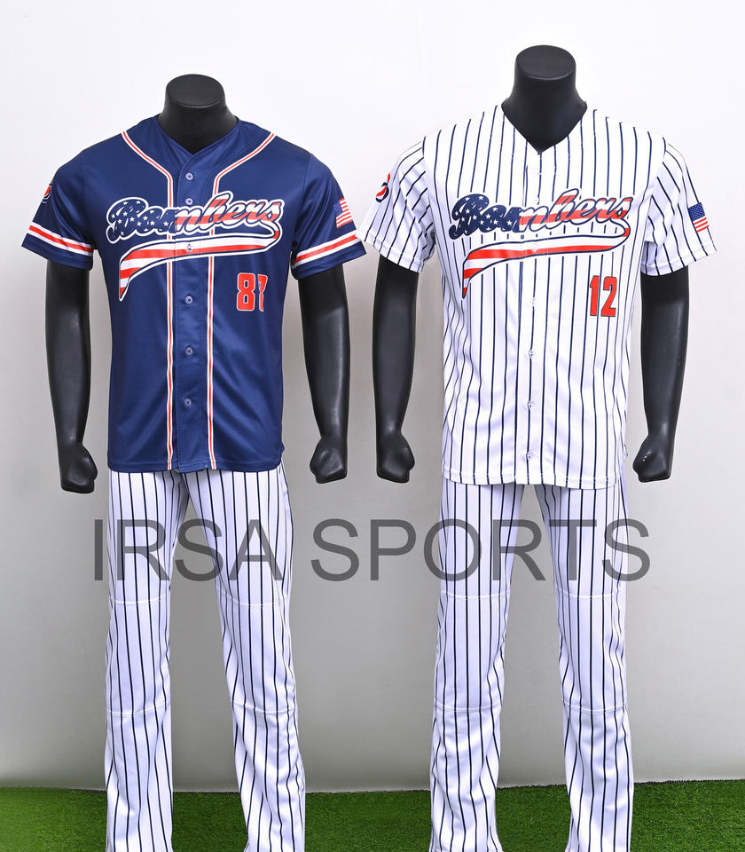 Ensemble de maillot de baseball et de pantalon à col en V imprimé par sublimation respirant de haute qualité - Unisexe 100% polyester 120g