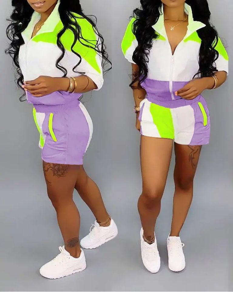 Ensemble d'été personnalisé coupe-vent respirant pour femme, comprenant un sweat à capuche court et un short, en nylon 100% à carreaux avec fermeture éclair, vente en gros, personnalisable