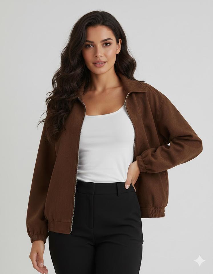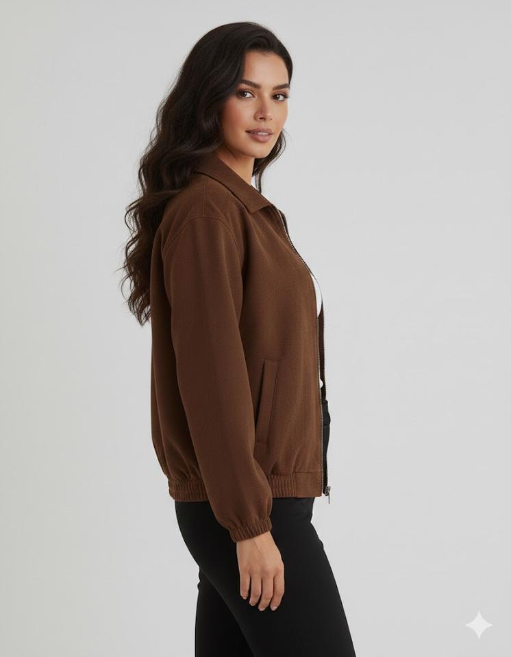 Blouson Bomber Femme Personnalisé en Faux Daim Marron, Léger et Respirant, Fermeture Éclair Avant, Teint Uni, Printemps/Automne, Fabrication OEM Professionnelle
