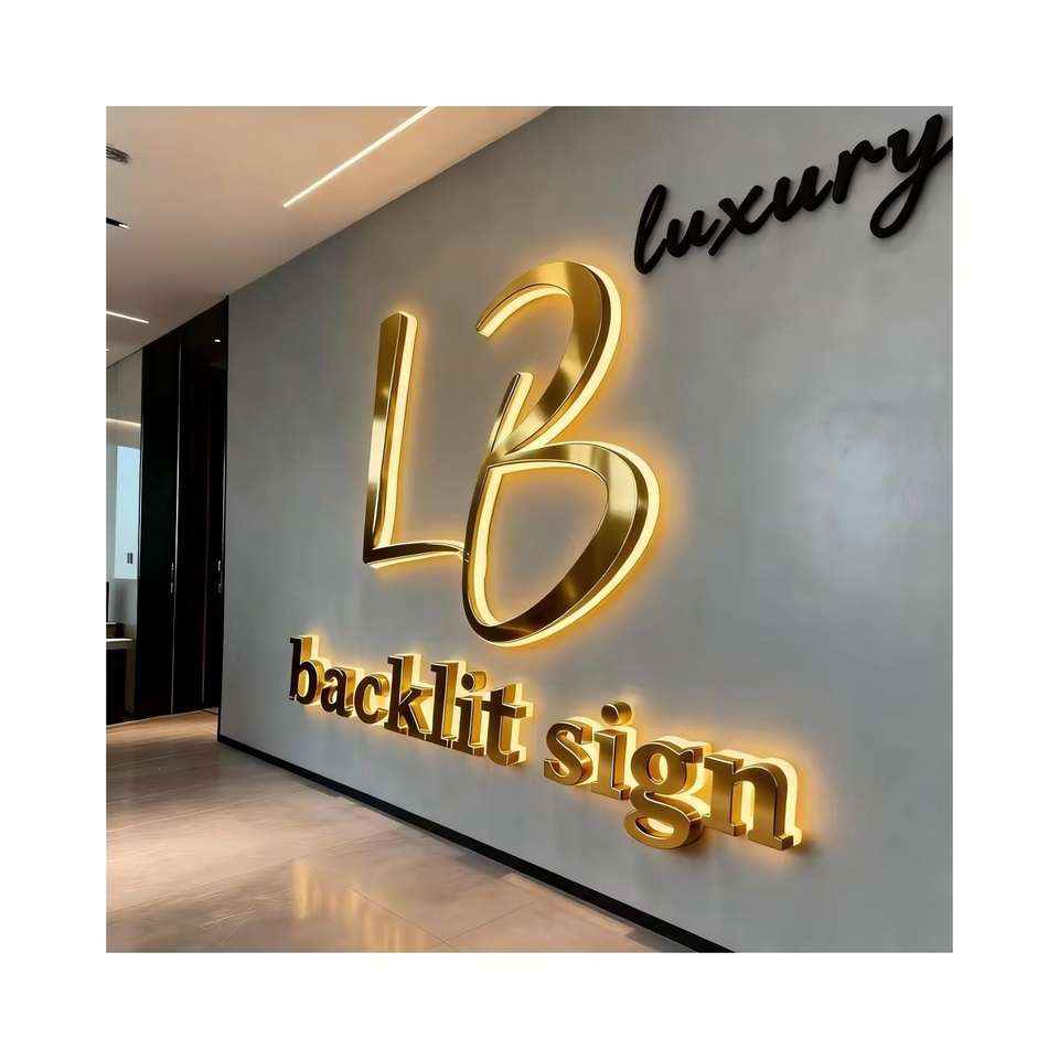 Enseigne LED 3D en or brossé personnalisée, enseignes extérieures, logo mural 3D, lettres en acrylique métalliques, enseigne rétroéclairée pour entreprise
