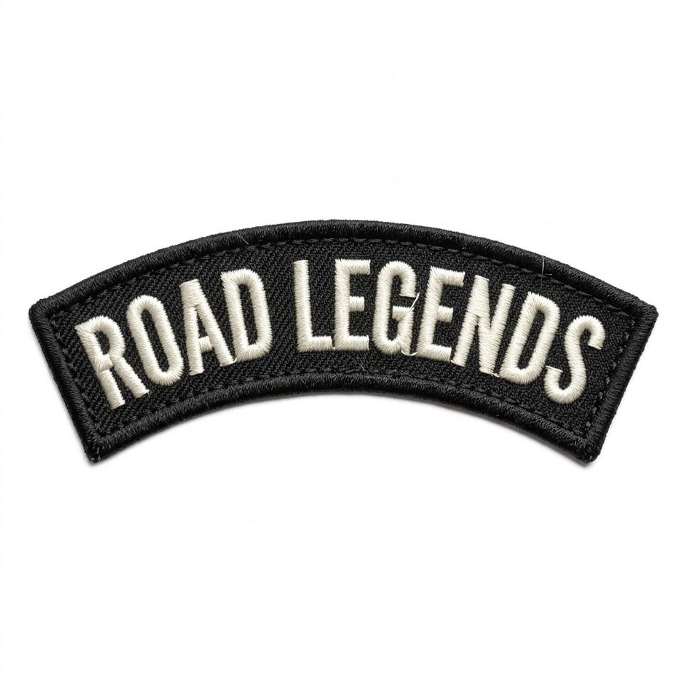 Patch brodé thermocollant personnalisé en tissu incurvé, style Rocker Biker, pour vêtements, vestes et gilets, vente en gros en vrac, collection Road Legends