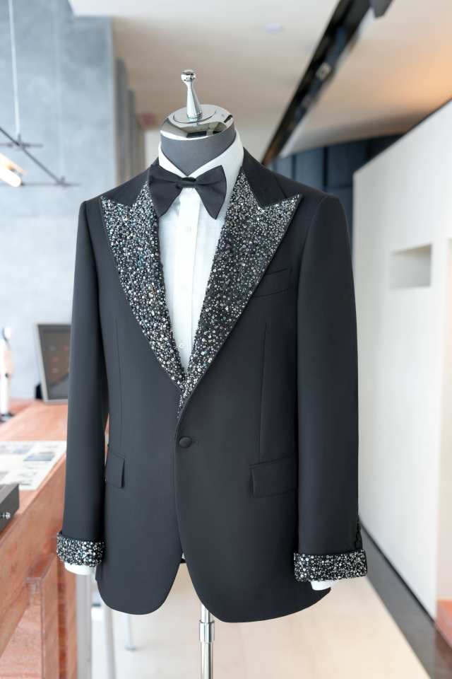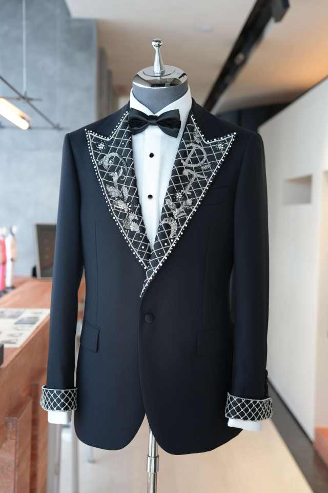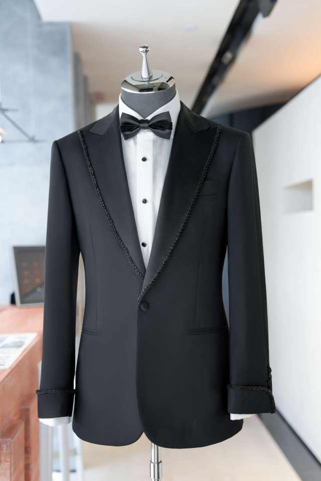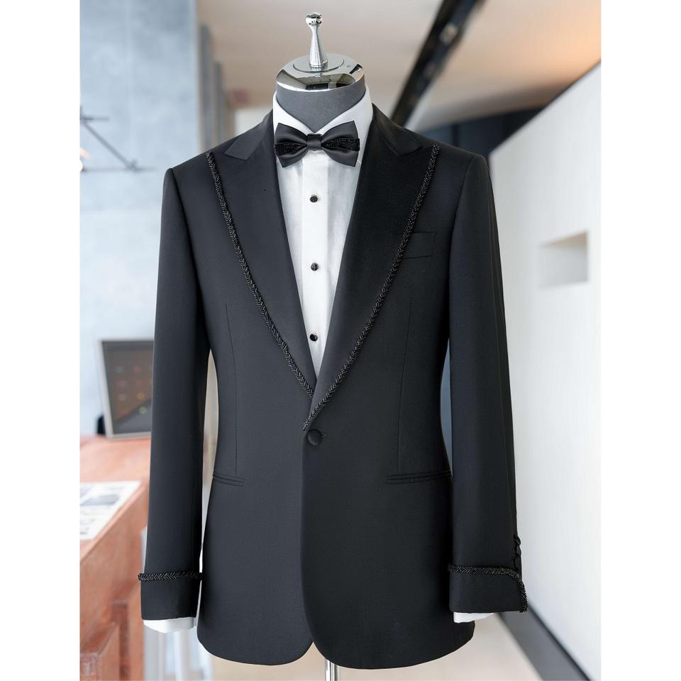 Costume 3 pièces slim personnalisé d'affaires costume de mariage marié cérémonie de fête smokings purs blazer noir fait à la main