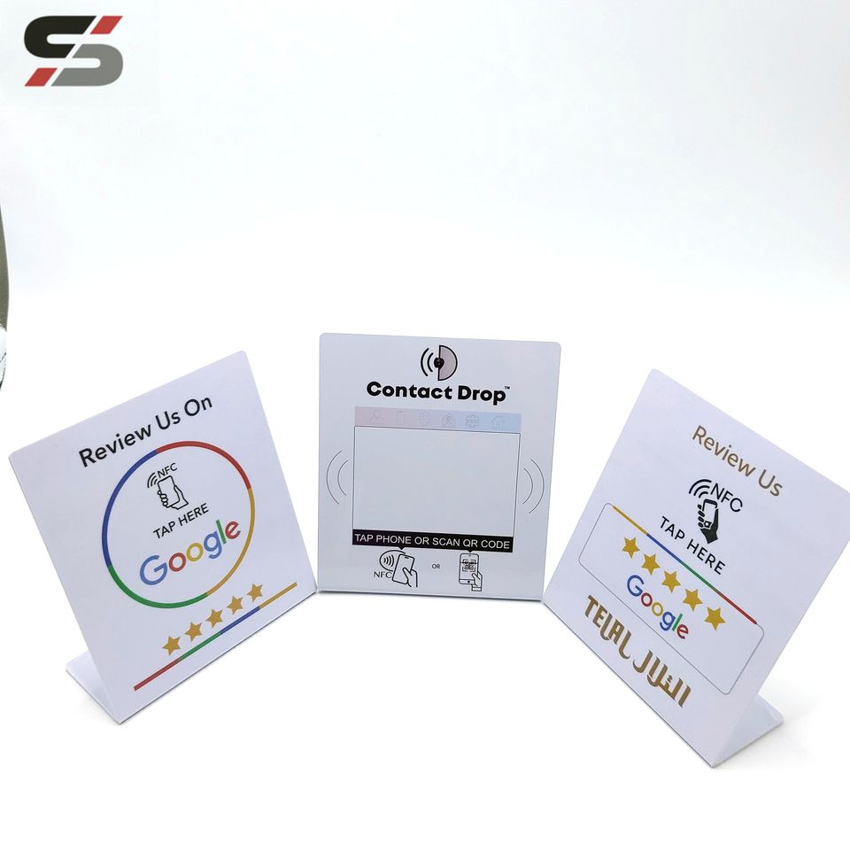 Imperméabilisez/protégez contre les intempéries, Stand de nfc dispaly, Stand de nfc, Carte de code qr, Google critiques, Nfc google examen, Support de table NFCUsages spéciaux