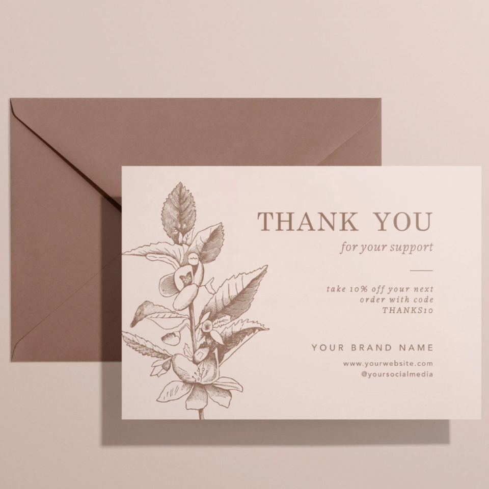 Carte de remerciement personnalisée pour entreprises avec enveloppes pour petites entreprises, bijoux, après-vente, papier d'art