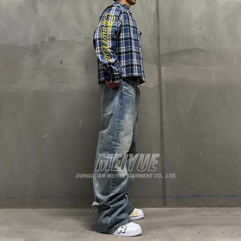 Chemises polo en flanelle boutonnées à manches longues personnalisées Fabricant de vêtements à rayures bretonnes Chemise personnalisée Chemise à carreaux en flanelle délavée à l'acide